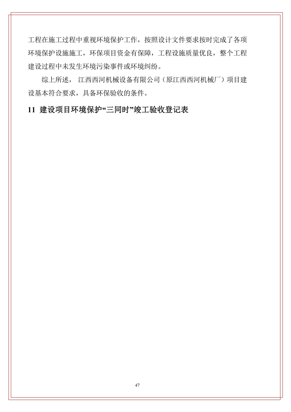 下一篇:江西西河機械設(shè)備有限公司(原江西西河廠)項目驗收竣工文本公示(附件)